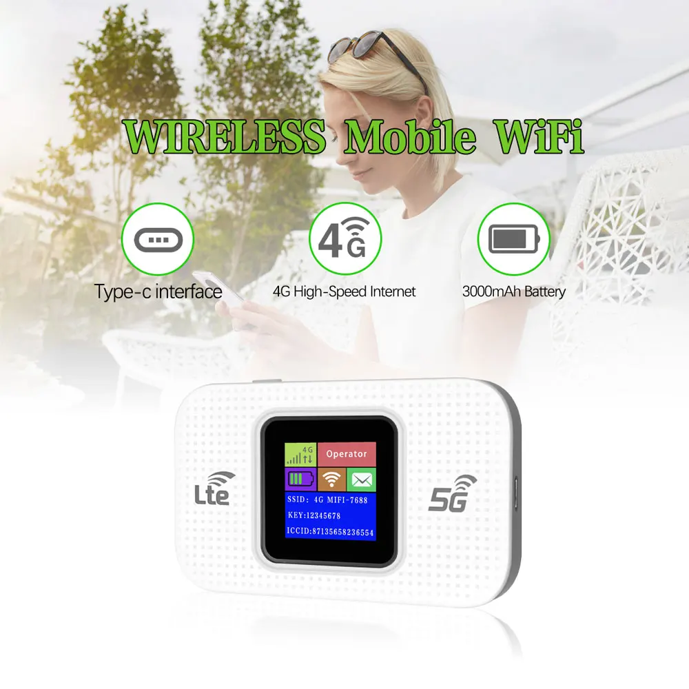 4G LTE Mobile WiFi Hotspot 3000mAh Battery, Portable Wireless Router with Color Screen, Fast Internet for Travel & Business