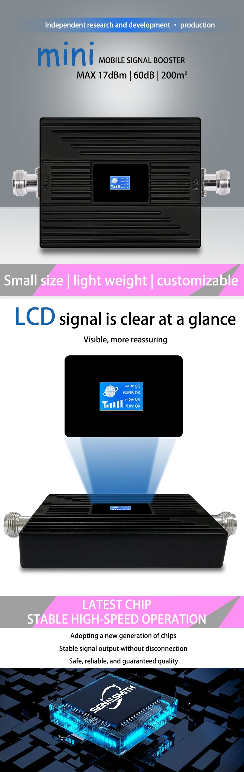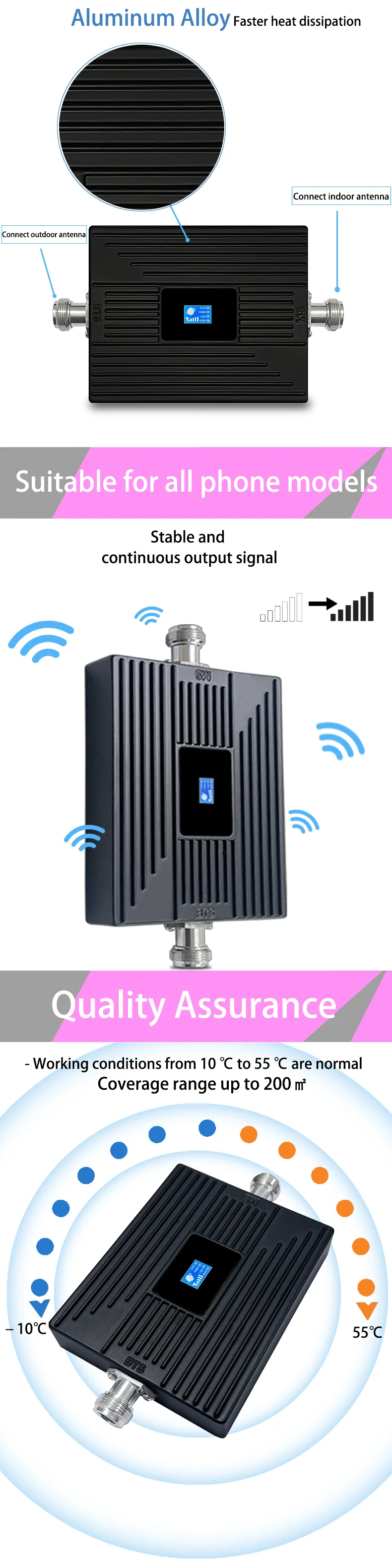 Reasons for purchasing mobile phone signal repeater: 1. Signal repeater can improve signal in weak signal environment. 2. The signal booster does not need additional wires to connect to your phone, nor does it need any additional accessories. 3. Practical, portable, beautiful and easy to install. You don't need to hire anyone to install the equipment. Install according to the instructions. 4. All mobile phones within the coverage range and suitable for the booster frequency can get signal improvement, and there is no limit on the number of mobile phones 5. The signal repeater can cover different coverage ranges: from small to large. In this case, you can use the corresponding repeater according to your environment 6. Our equipment is safe. The signal repeater will not generate any radiation. 7. Factory direct sales, all mobile phone signal problems can be solved